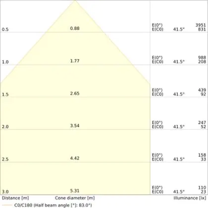The colour code is a combination of colour rendering (CRI) and light colour (Kelvin). The first number indicates the colour rendering (1 = very poor colour rendering, 9 = maximum colour fastness). The second and third number contains the light colour. Example: the colour code 830 consists of good colour rendering (8) and warm white light (3000K).