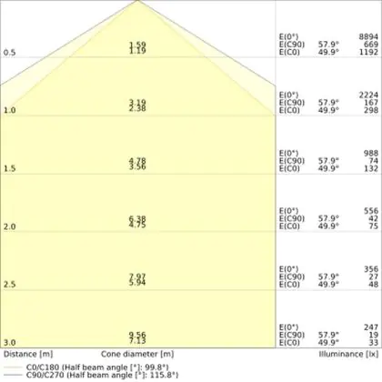 The colour code is a combination of colour rendering (CRI) and light colour (Kelvin). The first number indicates the colour rendering (1 = very poor colour rendering, 9 = maximum colour fastness). The second and third number contains the light colour. Example: the colour code 830 consists of good colour rendering (8) and warm white light (3000K).