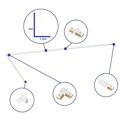 | Manufacturer Name | Complete L shaped 1-Phase Track Set White – 1.5 x 2 meters incl. End Cap, Power Connector and L-Con | |